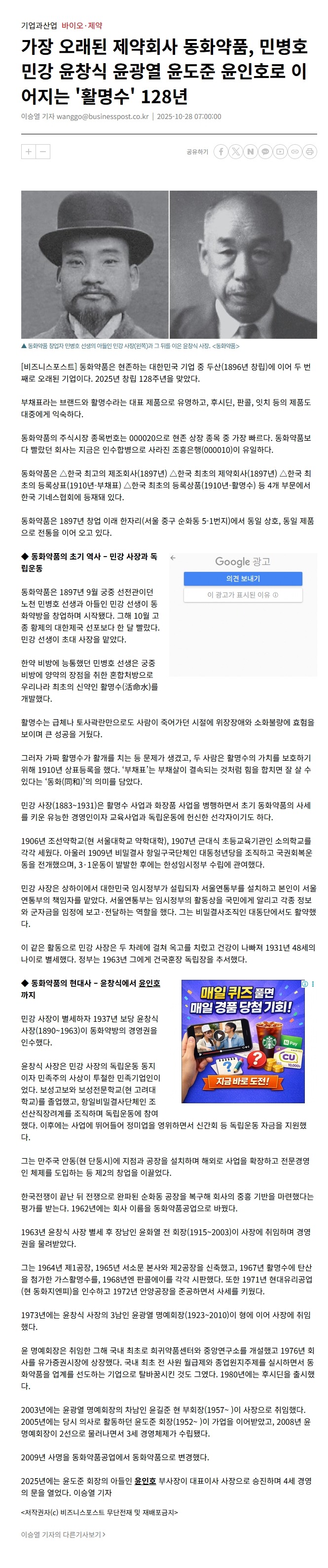 ºñÁö´Ï½ºÆ÷½ºÆ® 2025³â 10¿ù 28ÀÏ ±â»çÀÔ´Ï´Ù. °¡Àå ¿À·¡µÈ Á¦¾àȸ»ç µ¿È¾àǰ, ¹Îº´È£ ¹Î° À±Ã¢½Ä À±±¤¿ À±µµÁØ À±ÀÎÈ£·Î À̾îÁö´Â 'Ȱ¸í¼ö' 128³â |